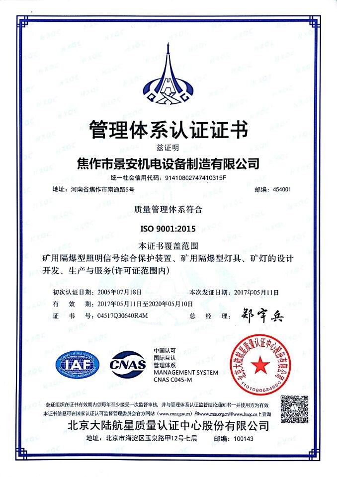 焦作景安公司始終堅持“以科技為先導,以市場為導向”的發(fā)展戰(zhàn)略,不斷進行新產(chǎn)品的研制和開發(fā),在國家“六五”到“九五”期間,承擔和參與了國家多項科技攻關項目,產(chǎn)品的技術和質(zhì)量一直處于全國同行業(yè)領先位置。并被中國電器工業(yè)協(xié)會評定為“質(zhì)量可信產(chǎn)品”。特別是在礦用防爆燈領域,礦用隔爆型半導體(LED)照明燈具,2008年列入國家火炬計劃,獲2009年河南省工業(yè)和信息化廳的科技成果二等獎,并擁有多項國家專利。